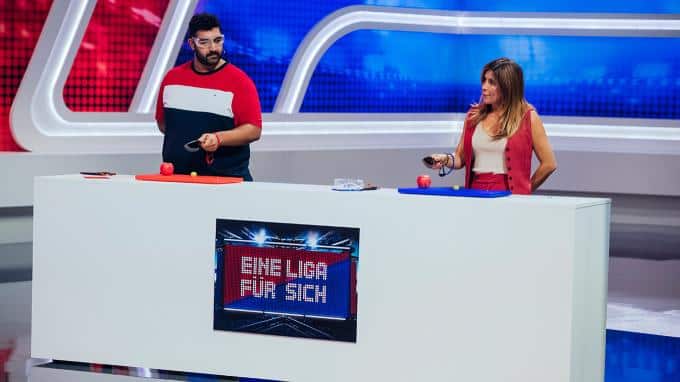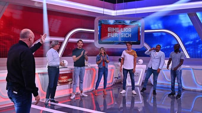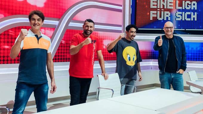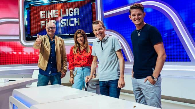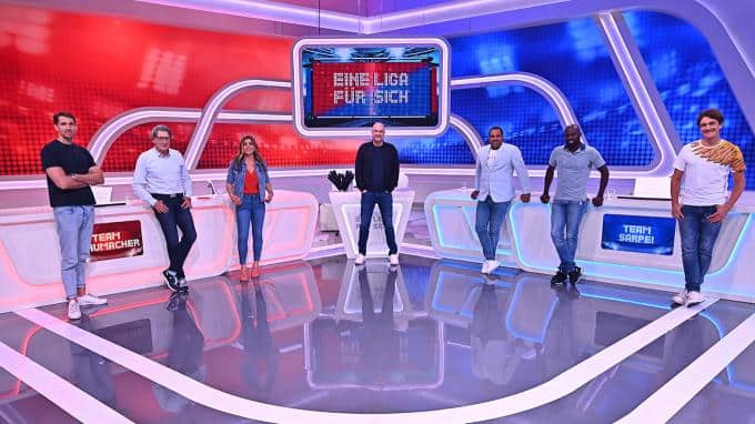 Ein sportverrückter Moderator, sechs Prominente, witzige Fragen und jede Menge sportlich-verrückte Aufgaben: das sind die Zutaten für Deutschlands erste Sport-Comedy-Show "Eine Liga für sich – Buschis Sechserkette" mit Moderator Frank Buschmann. An seiner Seite stehen außerdem Panagiota Petridou und Matze Knop.