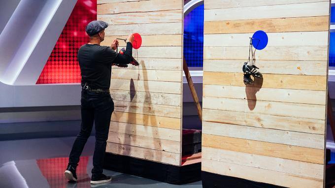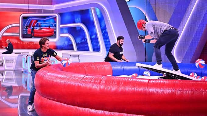 Im Finale heißt es dieses Mal Riesendarts werfen und Fragen beantworten.
