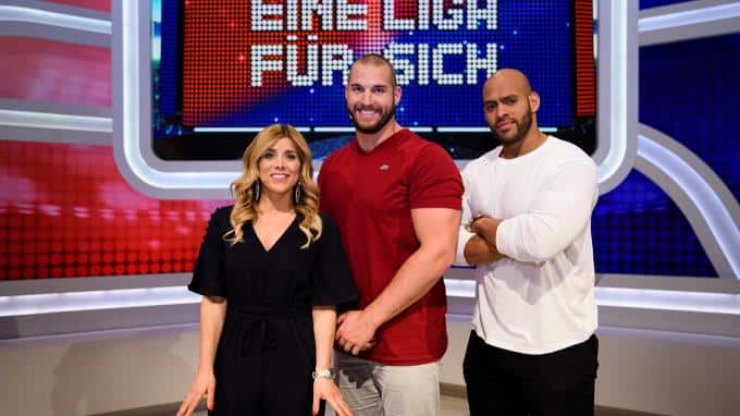 Ihre Gegner die Ex-NFL-Spieler Björn Werner und Kasim Edebali unterstützt von Pangiota.