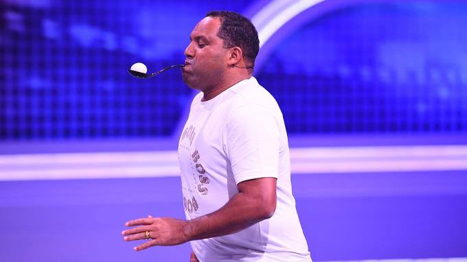 Tischtennis ist nicht seine Disziplin: Mario Basler ist chancenlos.