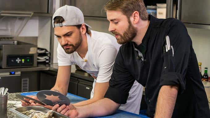 Dann erhält jeder Kandidat eine Hauptkomponente: Für Paula gibt es die Taube, für Jimi die Auster und für Jochen das Kalbsbries, was ihn gar nicht freut: "Ich hasse es.“