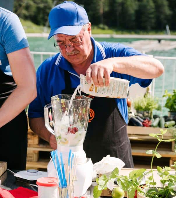 Für Team Blau heißt es jetzt mit einem Gourmet-Smoothie im Pressure Test zu punkten.