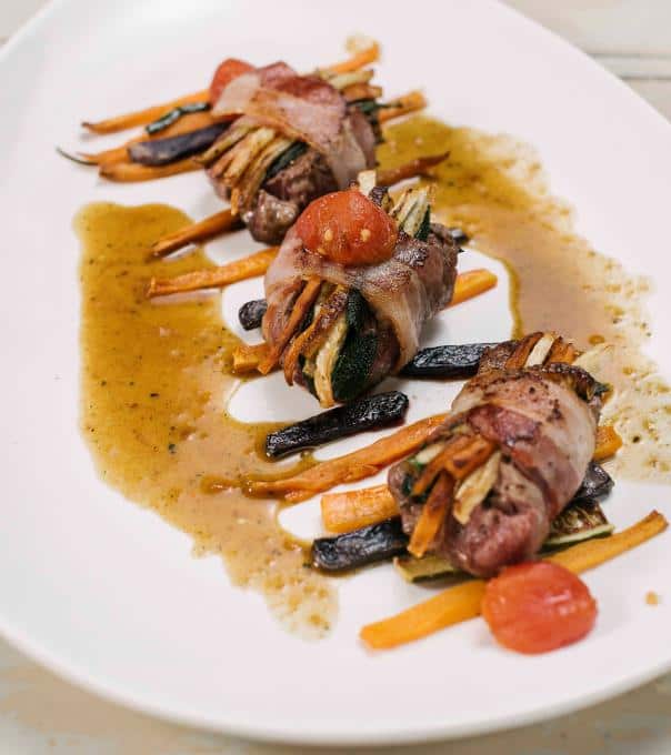 Man schneidet Gemüse in feine Streifen – für Wilfrieds "Filet Mignon als Saltimbocca mit Karotten und Weißweinsoße".