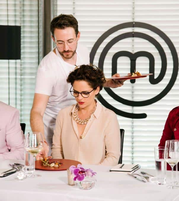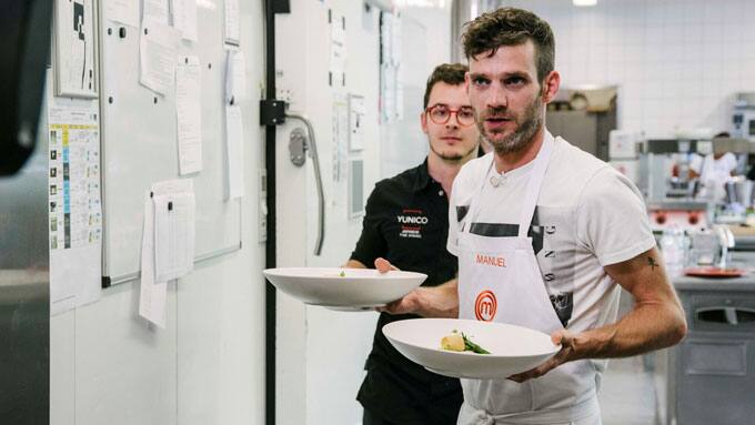 … aber ist ihm der kostbare Fisch auch nicht zu glasig geraten? Manuel beobachtet angespannt wie die Jury seinen Teller probiert.