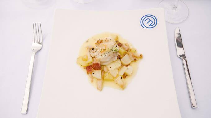 Alle Zutaten, die die Kandidaten benutzen dürfen, sind weiß. Dazu bekommen die Teams noch Hauptproteine, Jakobsmuschel für die Vorspeise und Seeteufel für den Hauptgang. Beim Dessert haben die Teams keine weiteren Vorgaben. Für die gesamte Aufgabe haben die Teams 90 Minuten Zeit, wobei nach 50 die Vorspeise, nach weiteren 20 Minuten der Hauptgang und nach wiederum 20 Minuten das Dessert serviert werden muss. Die Gäste probieren beide Gerichte und stimmen ab, schließlich kann sich das blaue Team durchsetzen.