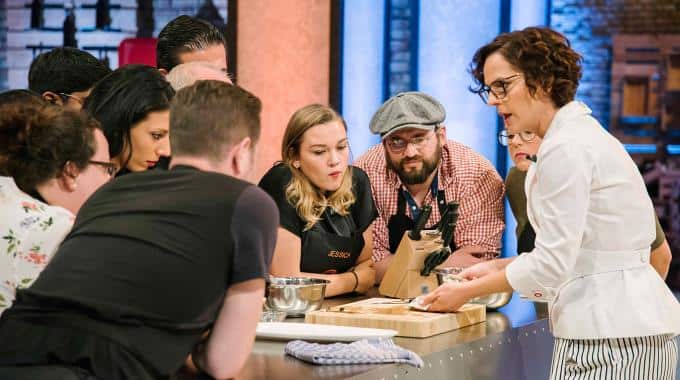 Die 10 Kandidaten des Verliererteams kommen mit schwarzen Schürzen in die Masterchefküche, das Gewinnerteam geht auf die sichere Galerie.