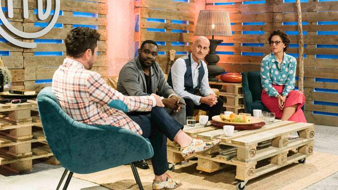 Justin Leone, Nelson Müller, Ralf Zacherl und Sybille Schönberger sind voller Erwartung, wie die 18 verbleibenden Kandidaten mit der heutigen Challenge klar kommen.