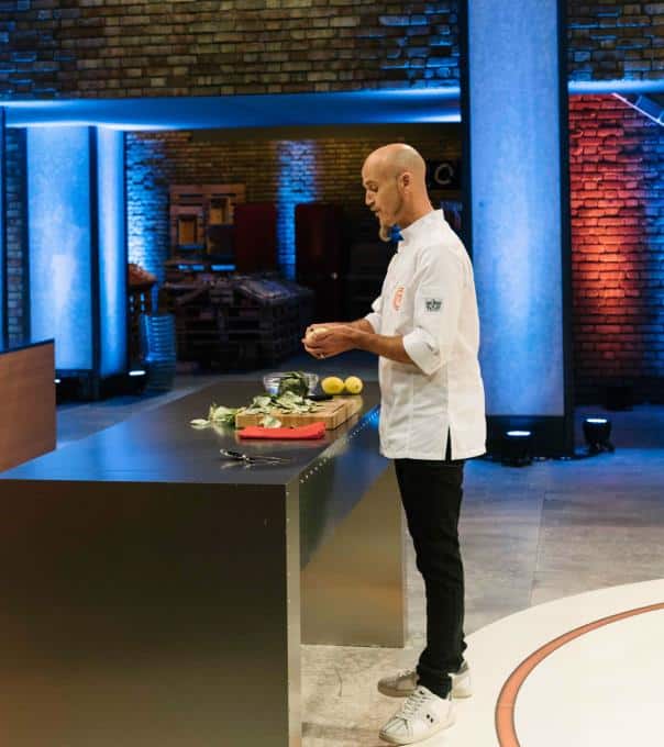 Die Jury erklärt den Kandidaten, dass der Pressure Test aus zwei Stufen besteht. Wer gut ist und sich geschickt anstellt, kann sich bereits in der ersten Runde retten. Wer das nicht schafft, muss in die zweite Runde. Ralf demonstriert, wie man einen Artischockenboden küchenfertig macht.