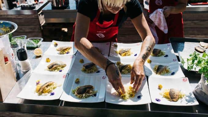 Beim Anrichten ist Präzision und Teamwork gefragt. Nur so können die Teams allen Gästen gleichzeitig die Vorspeise servieren.