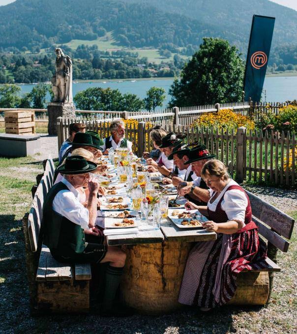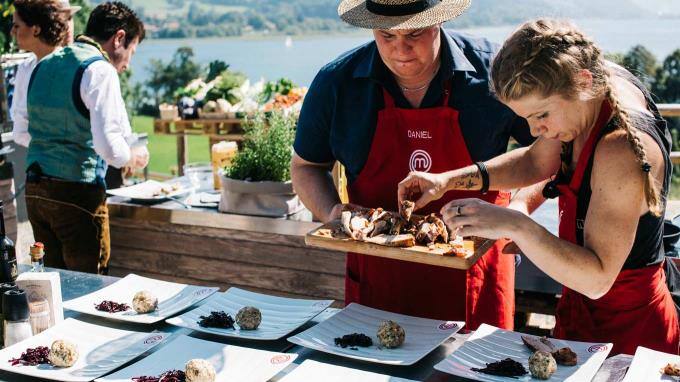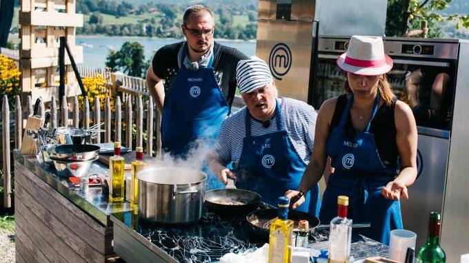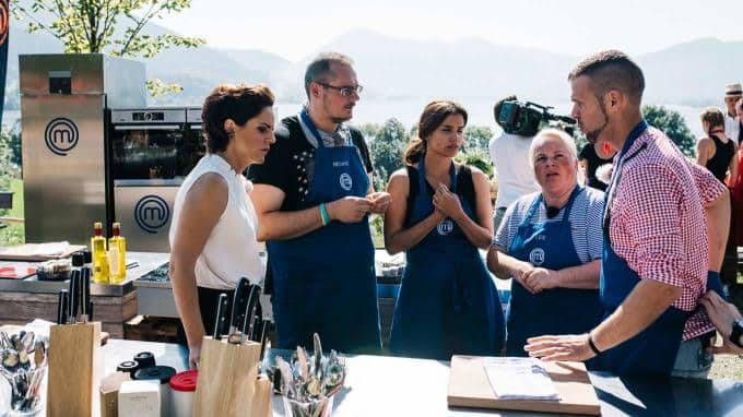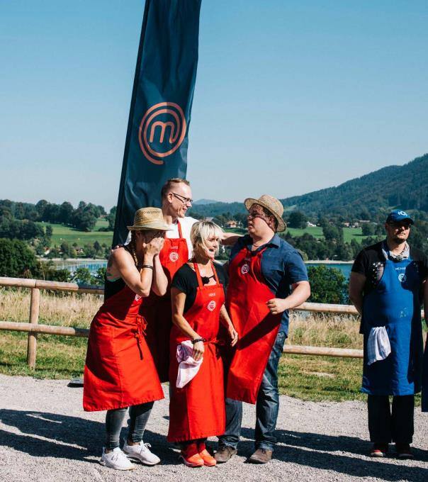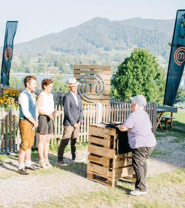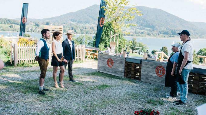 Die MasterChef Jury Ralf Zacherl, Sybille Schönberger und Justin Leone sind mit den Kandidaten dieses Mal am schönen Tegernsee in Bayern.