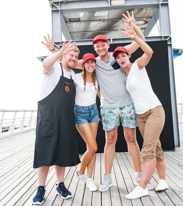 Bei "MasterChef" ist wirklich bloß eines sicher: bei dieser Jury ist gar nichts sicher. Nur vier Kandidaten haben es in die nächste Runde geschafft. Willkommen in der Top vier (von links nach rechts): Tobias, Lisa, Tom und Katharina.
