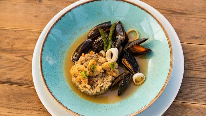 Dafür lag sie dem Bastler und Improvisator Tobias umso mehr. Er serviert Risotto mit zweierlei Miesmuscheln.
