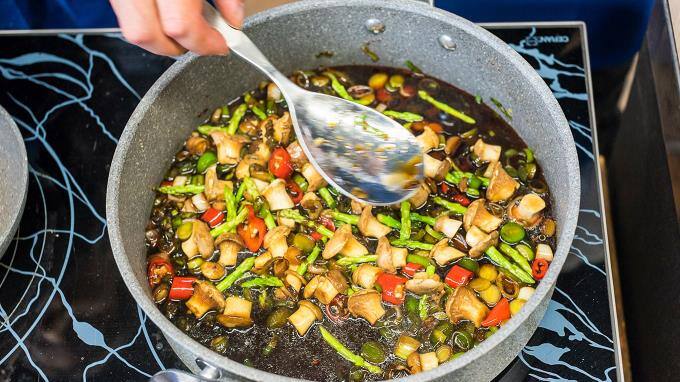Team blau konnte u.a. mit ihrem Kräuterseitling mit Thai-Spargel und Sojasauce überzeugen.