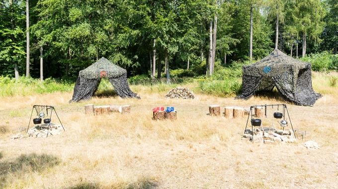 Kompass lesen? Wer mal bei den Pfadfindern war, ist hier klar im Vorteil. Denn bevor gekocht wird, geht es erstmal auf Schatzsuche. Die Boxen mit den Zutaten sind nämlich irgendwo im Wald versteckt.