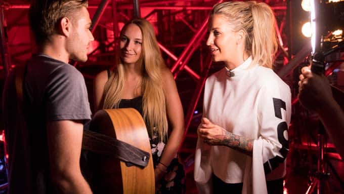 Ben unterhält sich Backstage mit einer Kandidatin.